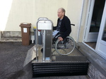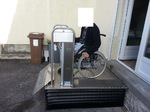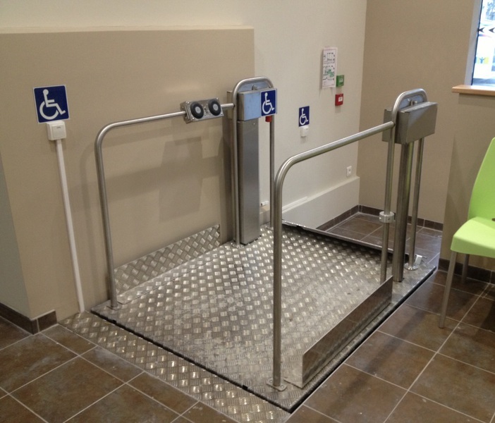 Ergo PLO est un élévateur permettant un franchissement jusqu’à 75 cm. Il est très facile à installer sans fosse, uniquement un branchement 220V.