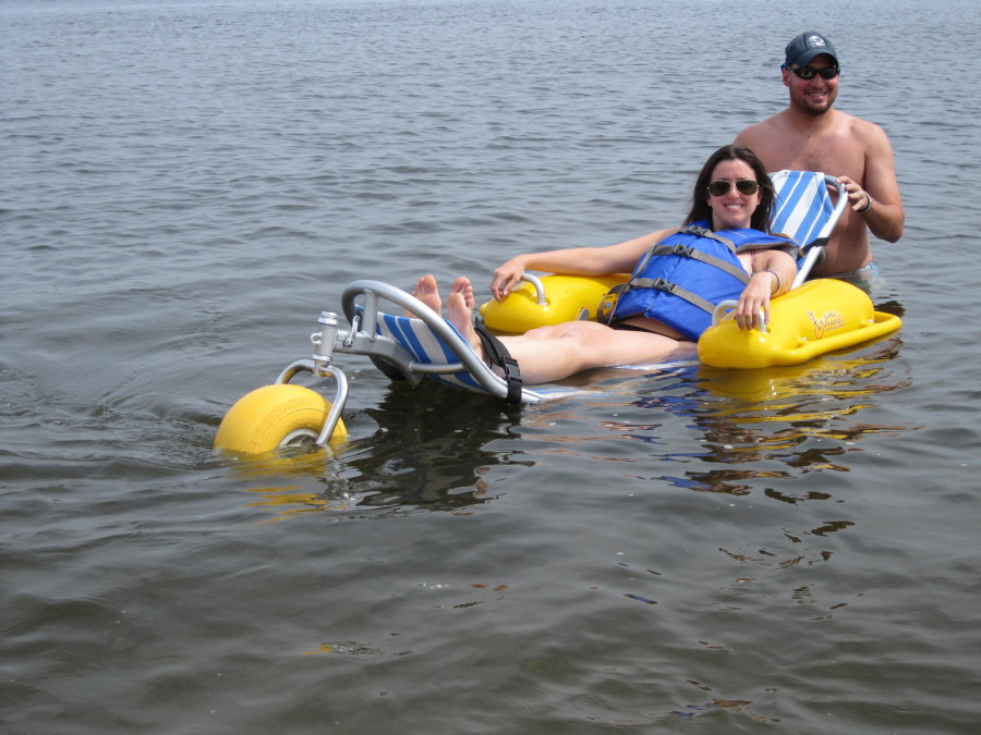 plage, de l'océan, des lacs, des parcs aquatiques et piscines avec la stabilité et le confort de WaterWheels®. Composé de 5 pièces, il peut être assemblé et démonté facilement sans