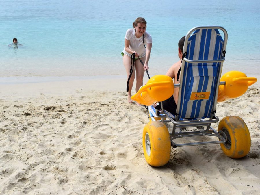 Il dispose d’une ceinture de sécurité afin d’éviter toute chute lors du déplacement sur le sable ou dans l’eau. Les utilisateurs peuvent ainsi profiter de la